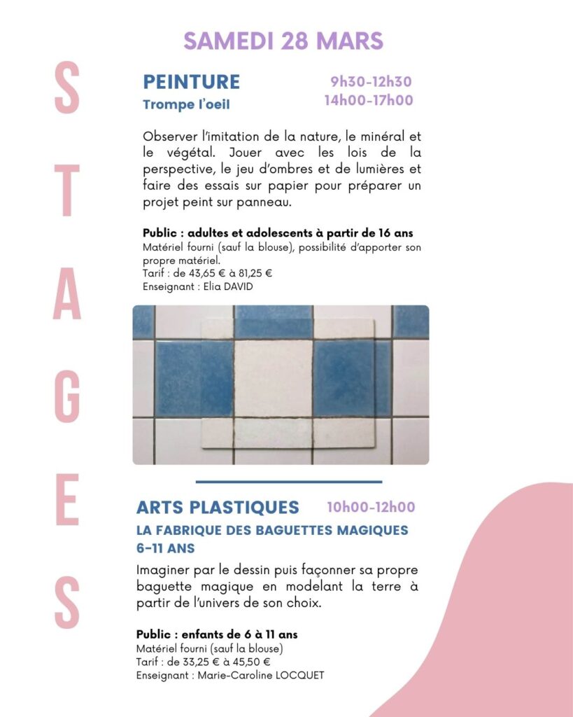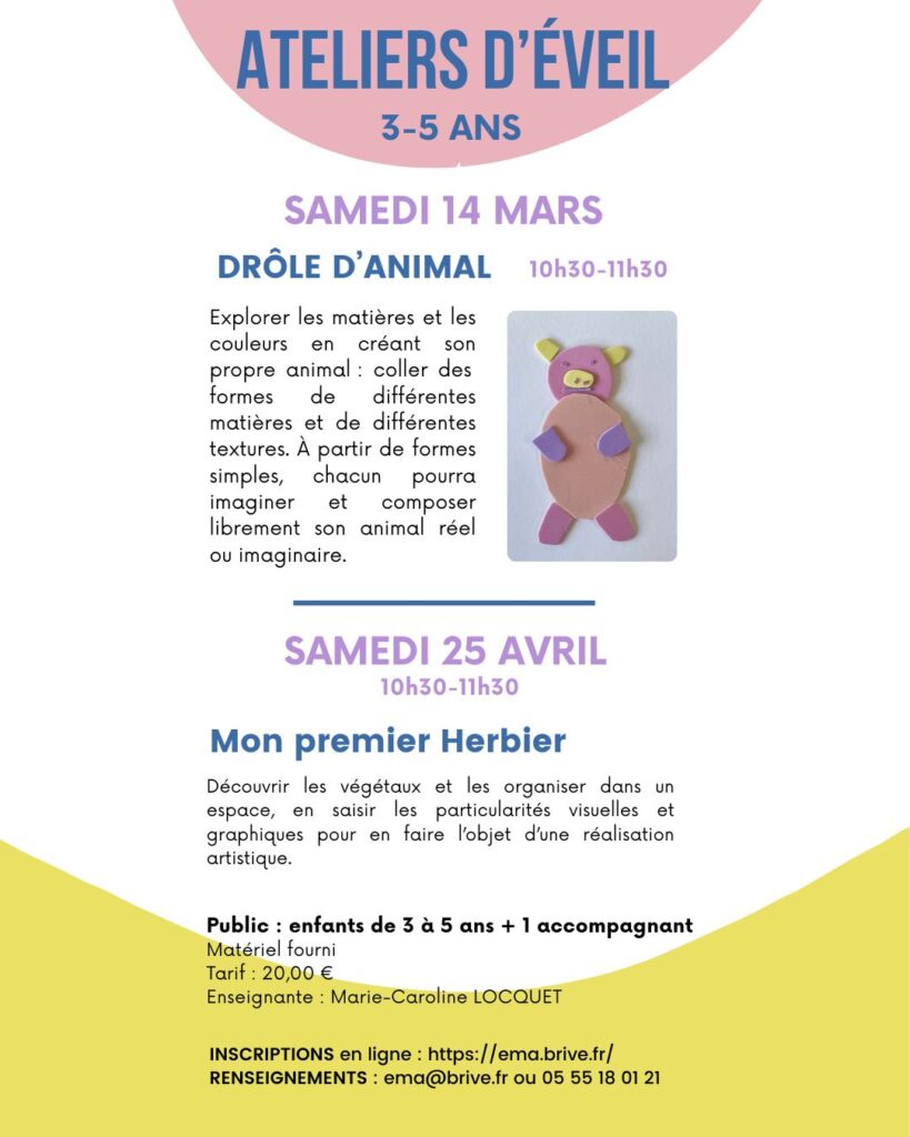 Découvrez nos ateliers d’éveil 3-5 ans et nos stages de printemps :